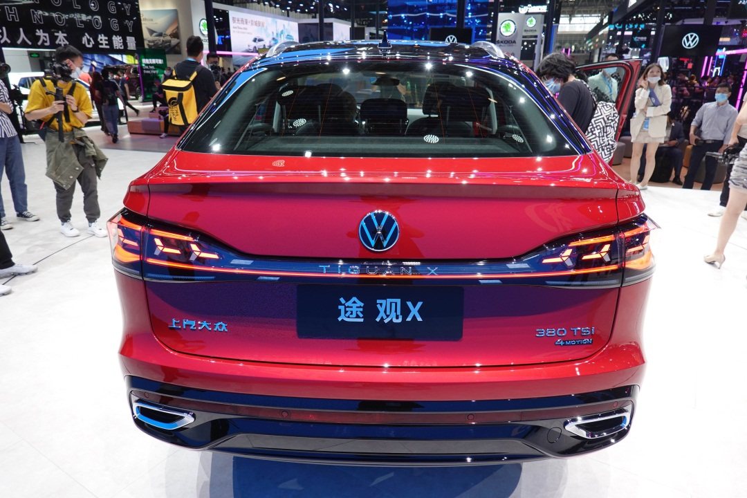 全新大众途观X在北京车展正式首发,首先是外观上,途观X与普通版车型相比,其主要的变化集中在尾部位置。新车采用了溜背式的车身设计,从B柱往后,车顶线条开始有往下斜的趋势,整体条线感要更加的流畅。另外,车头位置则保留了途观原有作为SUV的霸气,前大灯与格栅融为一体,下方包围两侧采用了“C”字型的造型设计,整个前脸除了看上去敦厚以外,还带有一丝丝动感。尾部则采用了当下最流行的贯穿式尾灯设计,尾灯内部采用了立体的“L”造型,并可实现流水式点亮效果。内饰部分,依旧是满满的大众范,与普通版车型差别不大,好在途观X在配置上具有一定的优势,新车将提供哈曼卡顿10扬声器音响系统、仪表板30色氛围灯以及方向盘加热等配置。动力方面,新车将推出330TSI以及380TSI两种动力,最大功率分别为186Ps以及220Ps,与其相匹配的是7速双离合变速箱。溜背式的车身造型看上去确实有范,但牺牲掉的是一定的车内空间,空间和颜值怎样权衡,交由你来判断。