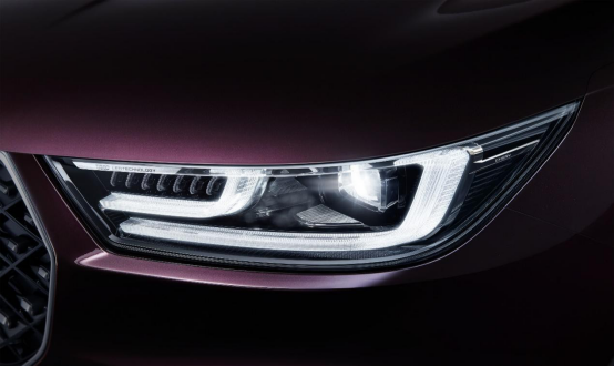 前脸部分,矩阵式的钻石前格栅设计带来独特的视觉效果,深邃立体又锋芒毕露; 犀利明朗的 4D 光刃豪华前灯组,集成 LED 晶体前大灯、双光刃日行灯、流水转向灯, 并加持AFS 大灯随动转向、IHC 智能远近光切换等科技配置,完美兼容设计感和功能性。车身侧面,简练的侧腰线暗含力量,加之流畅的车顶弧线,勾勒出大气沉稳的修长侧身。车尾部分,晶钻阵列后尾灯配置流水转向灯及呼吸迎宾模式,与前大灯相呼应,科技感十足又极具辨识度。