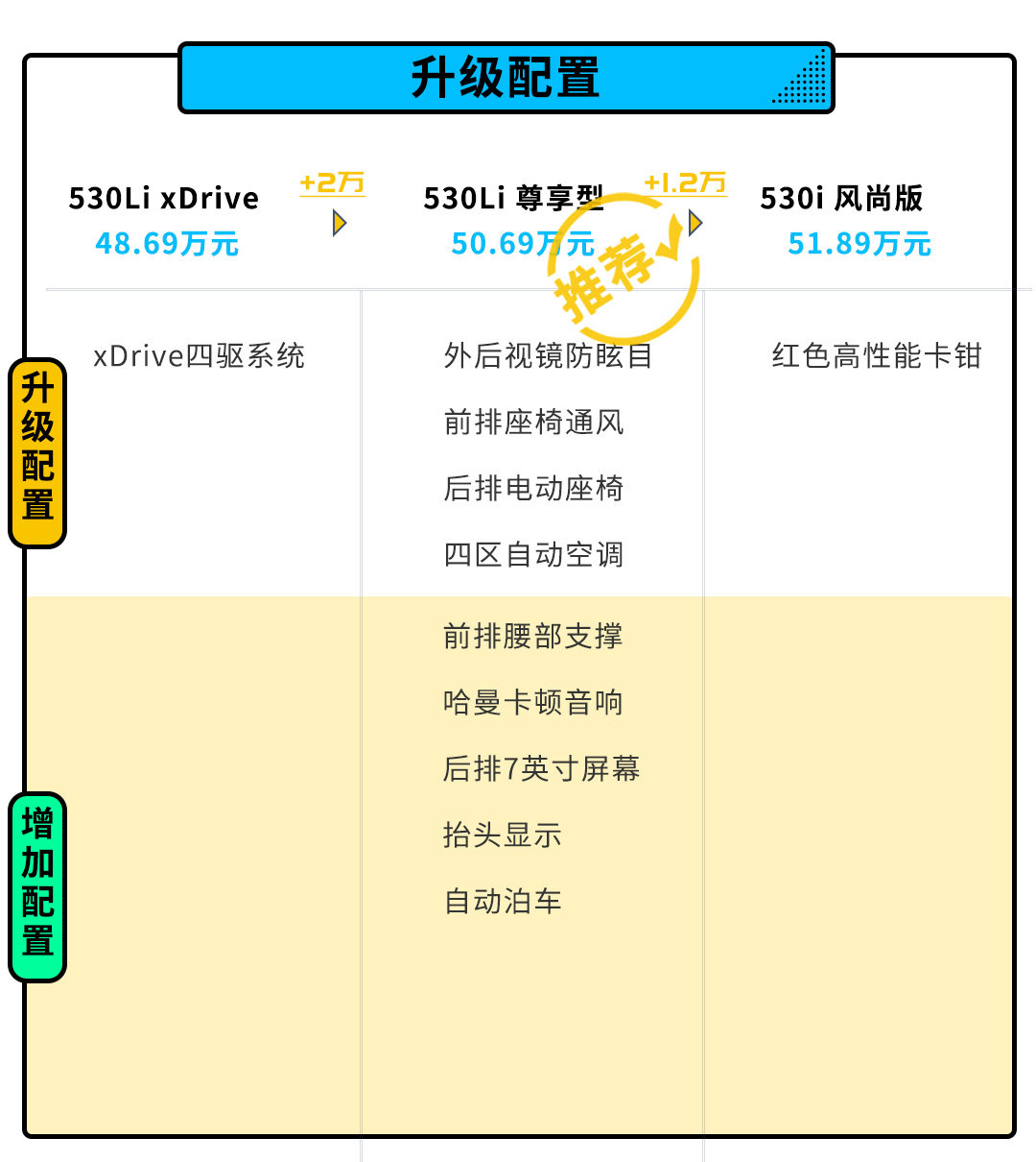相比短轴的530i车型,需要多花4万元才能获得530i的风尚版,整体配置同样与530Li 尊享型保持一致,如果对于配置和动力都有较高的要求,那还是可以考虑这款车型的。