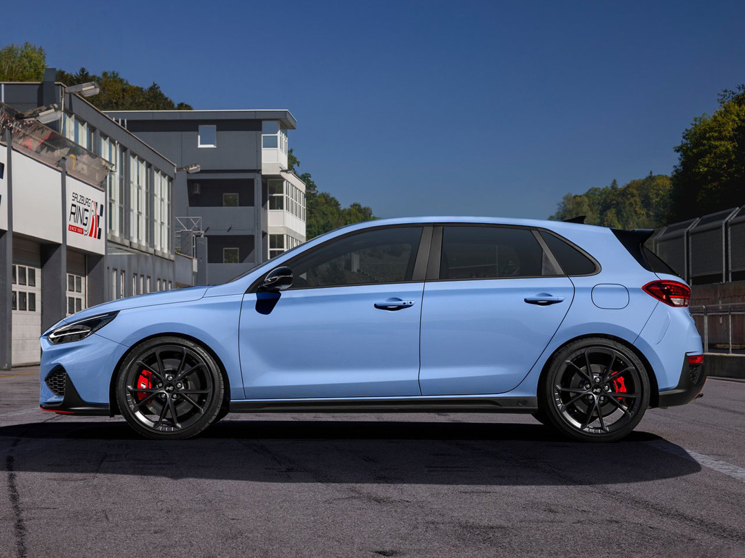 车身侧面新款现代i30 N与普通版本车型基本保持一致,只是更换了更大尺寸的轮毂,这也是目前厂家推出性能版车型的“必备”手段。虽然卡钳使用了红色带N标识,但是活塞数量并没有因为性能版车型而增加,刹车碟也只是使用普通的通风盘,并没有打孔或者划线的设计。运动化避震的使用,让你买车之后不用更换避震就可以达到“low低车身”的效果,只不过支撑性表现如何就要等到有试驾车之后才能得到结论了,但就视觉效果来看,i30 N还是相当不错的。