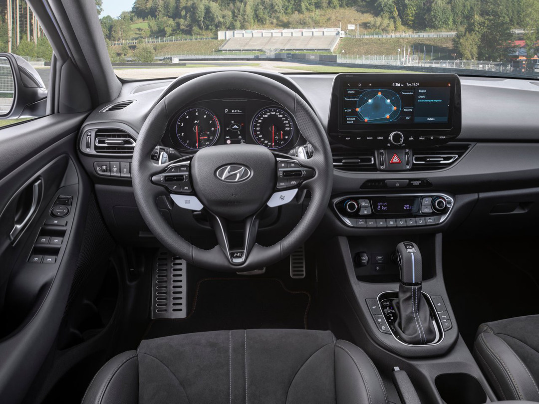 动力方面,i30 N有两个动力版本,均使用2.0T发动机,基础版车型最大马力250Ps,匹配6MT变速箱;选装性能套件之后,最大马力达到275Ps,得益于N Grin Shift技术,最大扭矩增加至377N·m,匹配8速DCT变速箱。此外,i30 N还提供电子限滑差速器,从而提升车辆的性能,特别是前驱车,在出弯时有限滑差速器能更早开油,提升出弯速度。