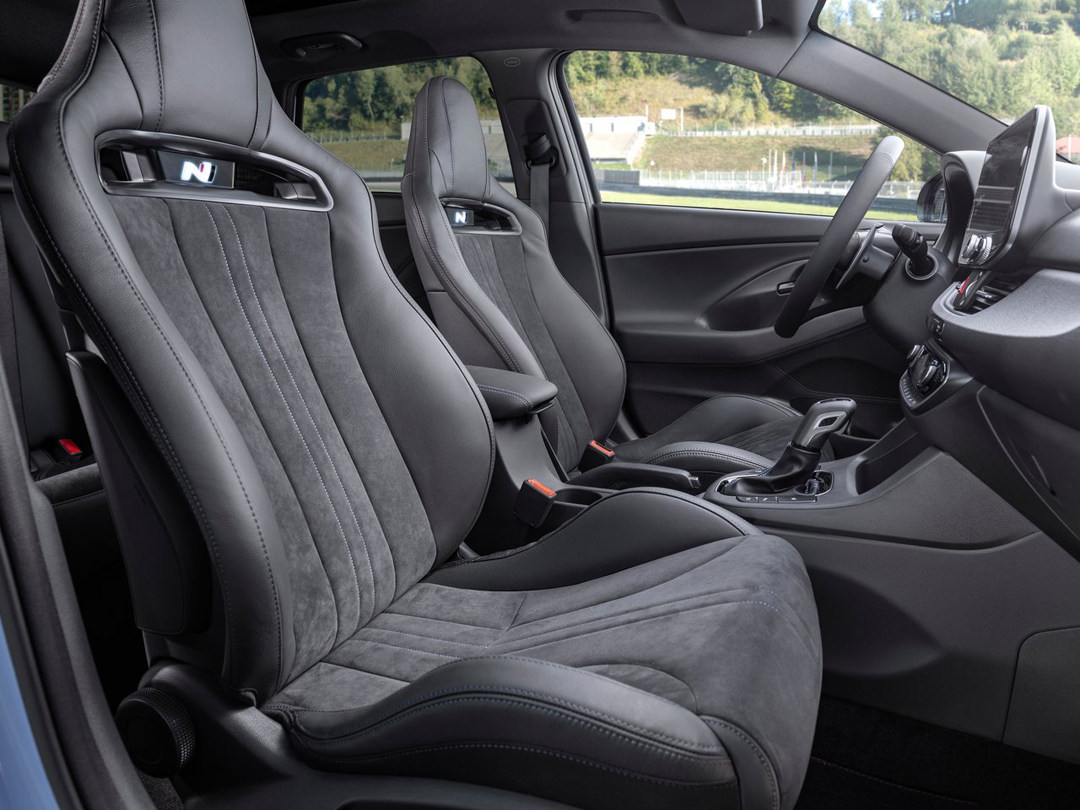 车内最大的亮点莫过于那两张一体化桶椅,除了有N标志以外,设计上也是相当精彩,中央部分使用Alcantara材质增加摩擦性,即便是激烈驾驶时能保证车内人员不会随着车辆运动而左右晃动;坐垫左右护翼也能增强这种固定身体的效果。如果安全带也使用车身同色的设计相信会将车内的运动特质进一步提升。值得一提的是,i30 N还配备全景天窗,在日常实用性层面得以保证,是性能车,也是家用车。