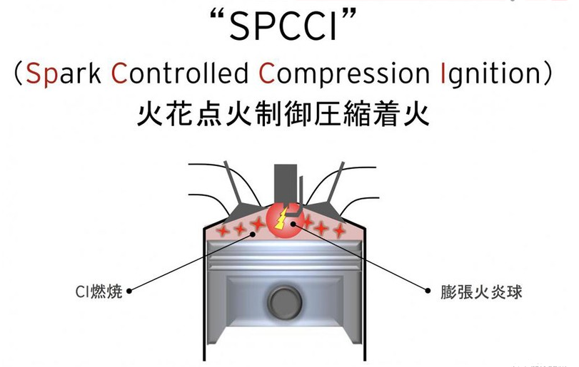 而马自达采用了SPCCI(Spark Controlled Compression Ignition)——“火花控制压燃点火”技术,就很好地解决了以上难题。