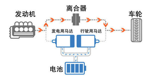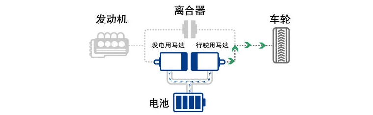 i-MMD系统由阿特金森循环发动机、发电机、驱动电机、锂离子电池和动力控制单元组成。有电机驱动、混合驱动和发动机驱动三种模式。
