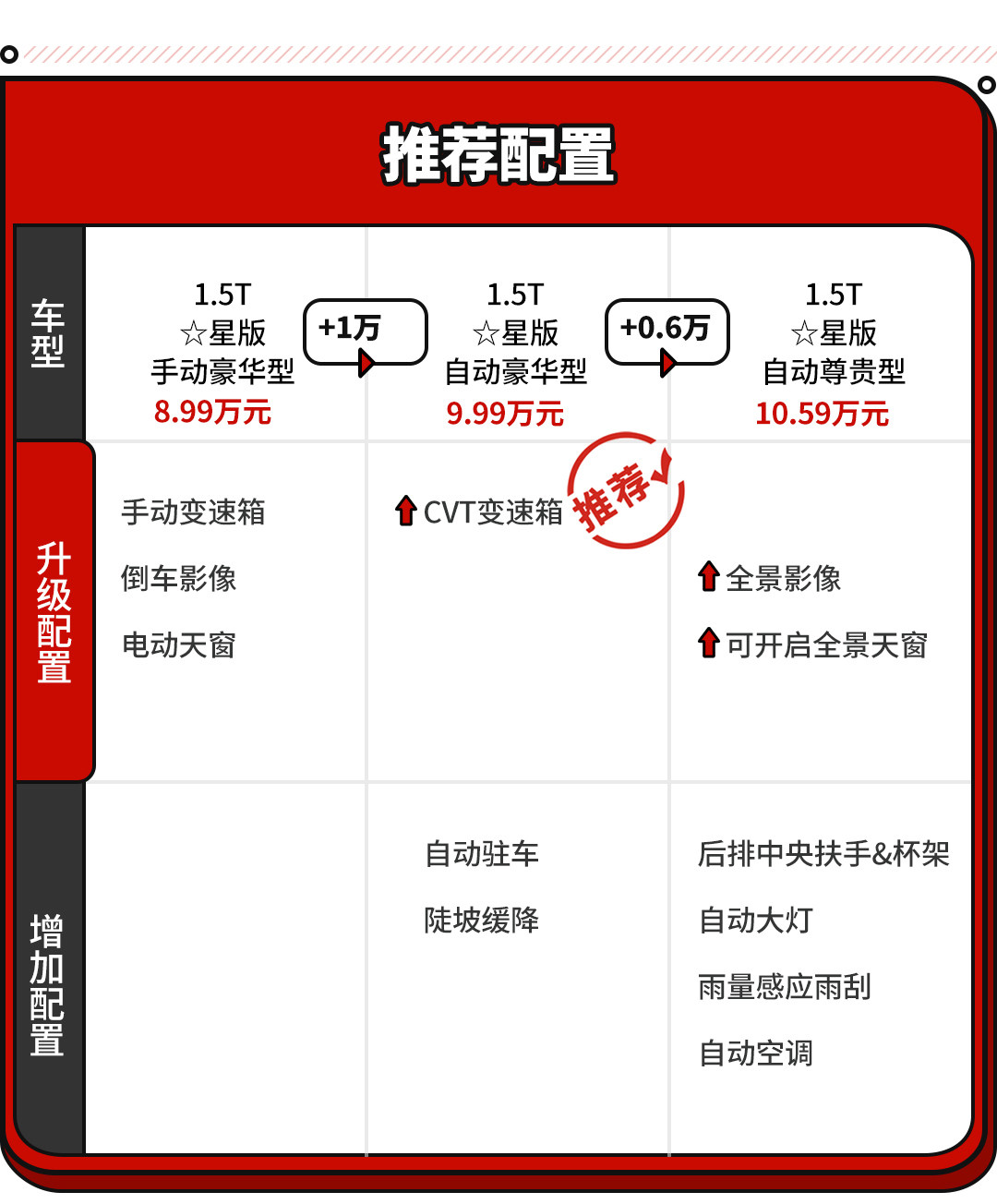 从原来六边形进气格栅换成更沉稳的梯形格栅,分体式大灯个性依旧,但保守的前包围显露出家用车的安全感,内饰方面采用巨大纵置10.4英寸中控屏,定速巡航、全景天窗、以及丰富的车机功能,一辆10万不到的车已经给到了你想要的配置。