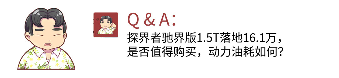 探界者的动力分为1.5T+6AT和2.0T+9AT两种组合,其中驰界版就属于1.5T车型,根据车主口碑的数据显示,百公里8.2L的成绩,对于一台中型SUV而,算是相当好的成绩了。