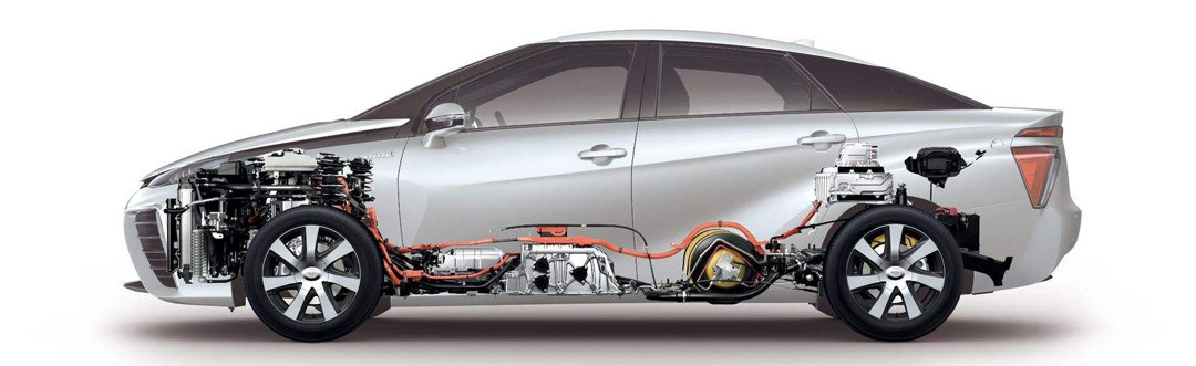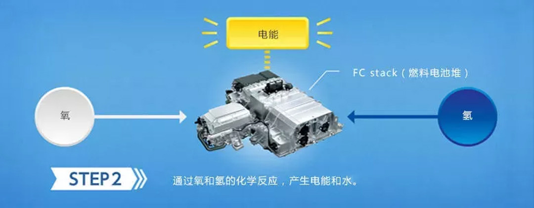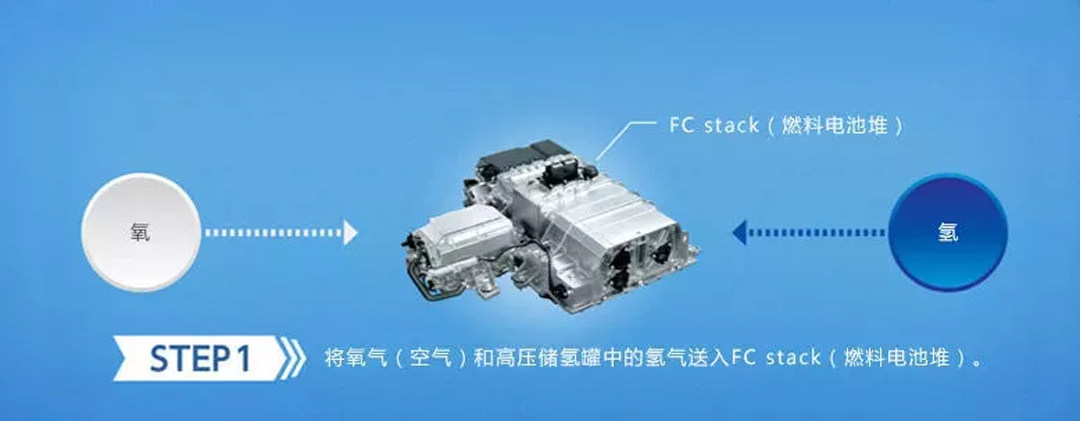 丰田Mirai最主要核心部件就是燃料电池堆栈器了。其丰田Mirai工作流程就是,在加氢站加入5公斤的氢气到车辆的储氢罐(这个过程只需3分钟),然后,吸入氧气与氢气在燃料电池堆栈器内进行化学反应燃烧,提供为车辆提供动能。