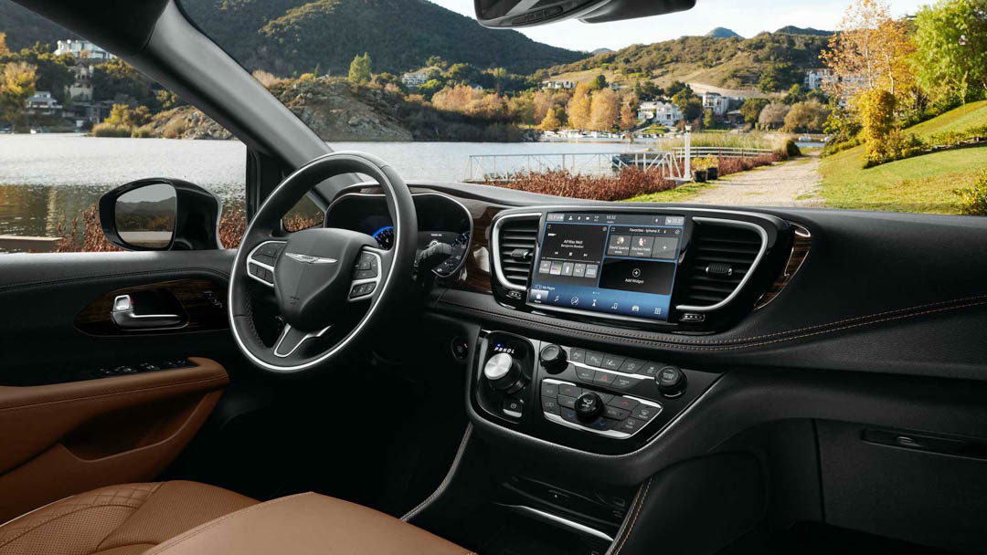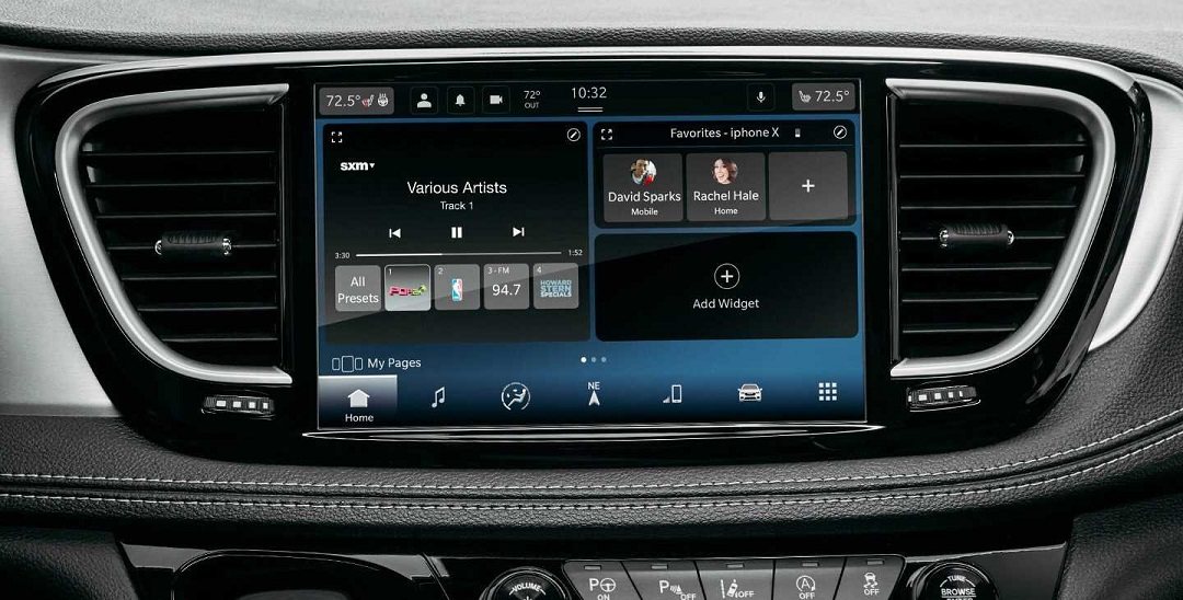 中期改款还更换了大尺寸的中控屏幕,屏幕尺寸比旧款大了将近20%,新款10.1英寸的屏幕内置了北美人民最爱的Uconnect 5系统,该系统带有Amazon Alexa语音助手,司机动动嘴皮子就可以完成大量设定。除此之外,还配备了FamCAM,该功能可以通过屏幕直接看到第二排第三排乘客的状态。手机互联功能方面,配备了Apple CarPlay和Android Auto,提高车内中控屏幕的实用性。