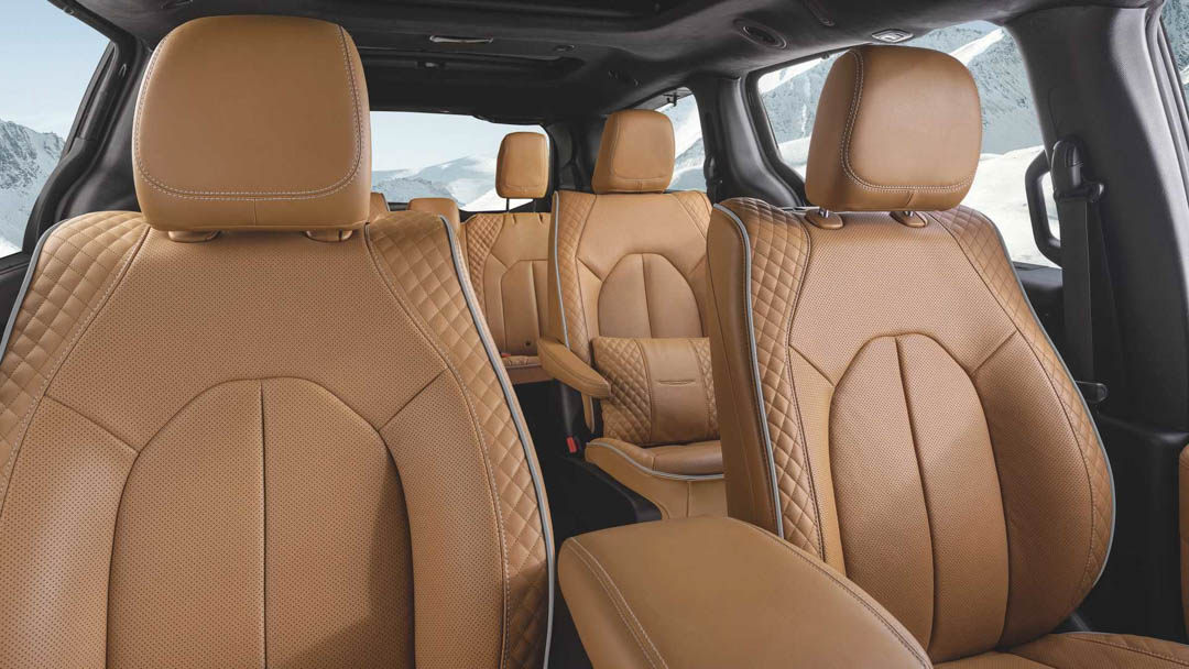 作为一台中大型MPV,乘坐的舒适性才是最重要的指标,新款PACIFICA全系均配备了七座布局,其中前两排座椅均配备了座椅加热功能,都可以通过电动按钮来调整角度,而且第二排第三排乘客均有独立空调出风口,除此之外提供了12个充电接口,功能十分丰富!