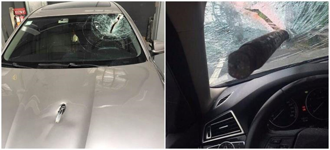 而后者则是与第一起案例相似了,通过行车记录仪记录下的画面来看,这台宝马5系在高速上正常行驶时,疑似是右前方的大货车碾压并从地面上弹起了一根钢管,随后便被击穿了前挡风玻璃。