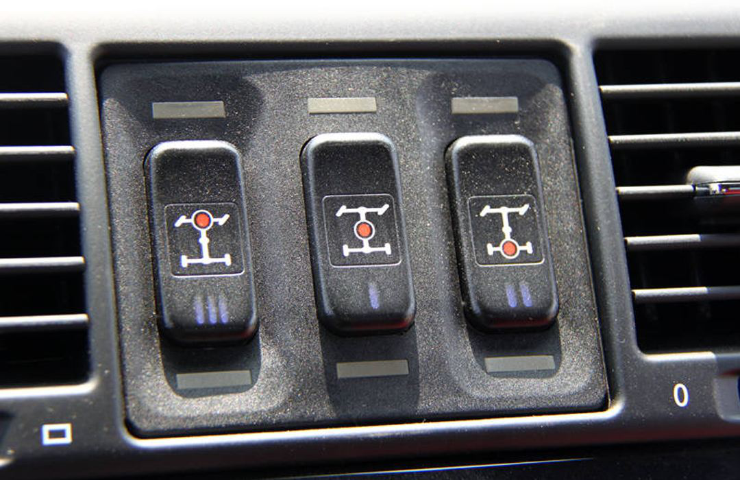 这里多说一点,哈弗H9上采用的“三把锁”是这样:前桥和后桥都配备了差速锁(伊顿电控式差速锁),中央差速锁则是通过带锁止功能的中央多片离合器式差速器实现的。