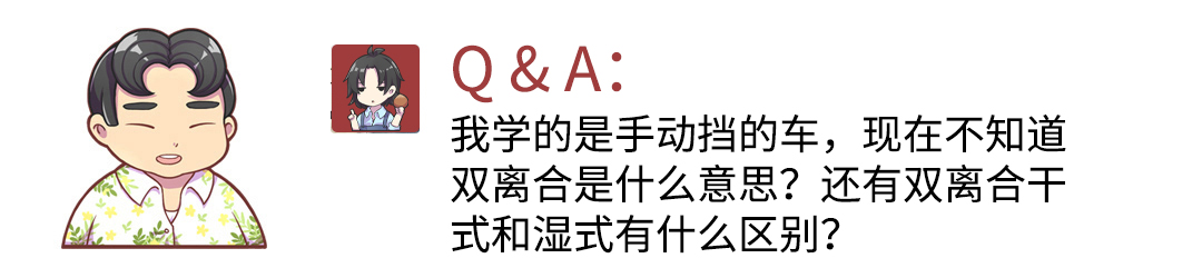 干湿的离合器的工作环境中散热靠空气,因此散热效果奇差差,并且能承担扭矩小,但因为价格便宜,会有很多低端车型采用干式双离合。干式双离合要命的是在堵车环境下,频繁挂挡产生的高温会导致变速箱热保护,但是它传动效率高,换挡速度快,适合不堵车的地方(但国内哪儿有这地儿?)。