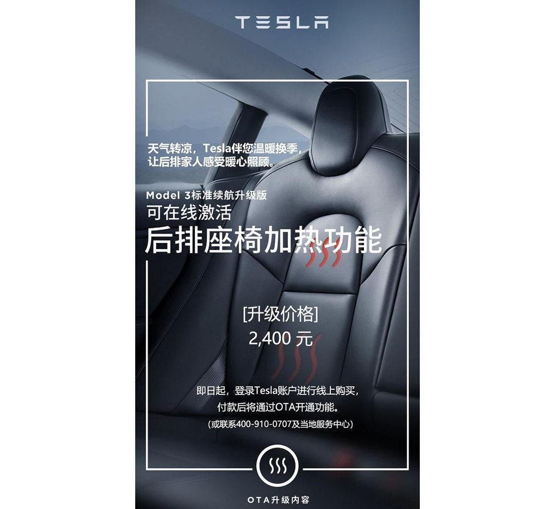 除了座椅加热以外,特斯拉此前也推出过系统付费升级服务。在2020年8月,特斯拉官方针对2018年3月前生产的Model S和Model X车型,推出两个升级项,分别是定价25550元的标准升级以及定价21500元的优惠升级,升级后可以获得哨兵模式、卡拉OK、视频播放等服务。连当初花了大价钱的Model S和Model X车主都不能避免“被割韭菜”。