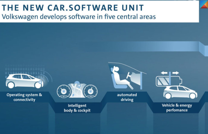 另外大众CEO迪斯也表示,“未来汽车创新中,软件将占到90%。”目前大众有2万名研发人员,其中90%都面向硬件开发。预计到2030年,这一点将发生根本性变化。研发成本中软件将占到一半。届时大众将从一个计算机分散式系统,即控制单元,转变成一个更加集中、网络化更高的电子架构。
