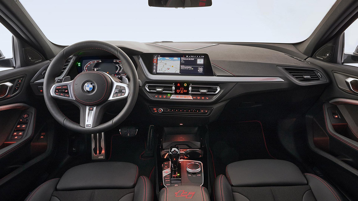 内饰来看,全新宝马1系跟随了家族最新风格,整体变得更豪华和时尚,一改从前乏味的设计,其配备了经典的“丁字裤”三幅式方向盘,仪表升级为全液晶面板,中控屏则采用悬浮式造型,科技感提升明显。