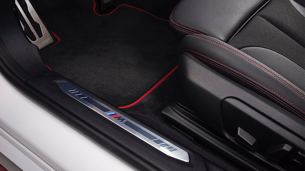 另外新车还在中央扶手箱表面加入显眼的“ti”标识,车门处还有宝马M的迎宾踏板,整体细节营造到位。