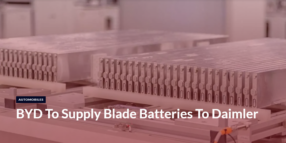 而据韩媒的报道称,中国第二大电池制造商比亚迪,未来将向戴姆勒公司供应旗下最新的磷酸铁锂动力电池“刀片电池”。不过截止到目前为止,比亚迪与戴姆勒双方都对这一报道未做回应。