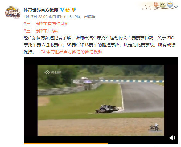 不过根据赛会仲裁,关于 ZIC摩托车赛 A组比赛中,85赛车(王一博驾驶)和18赛车(胡通明驾驶)的碰撞事故,认定为“比赛事故,所有成绩保持”。换句话说,抗议无效。