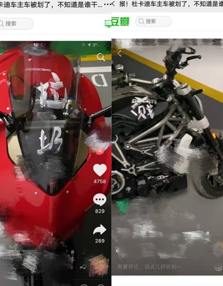 由于有不少王姓车手的粉丝认为,事故是对手恶意造成的,竟然对不少杜卡迪车辆进行涂画,对于车主来说受到的不少影响,而杜卡迪车辆价值普遍都在10几~20几万。