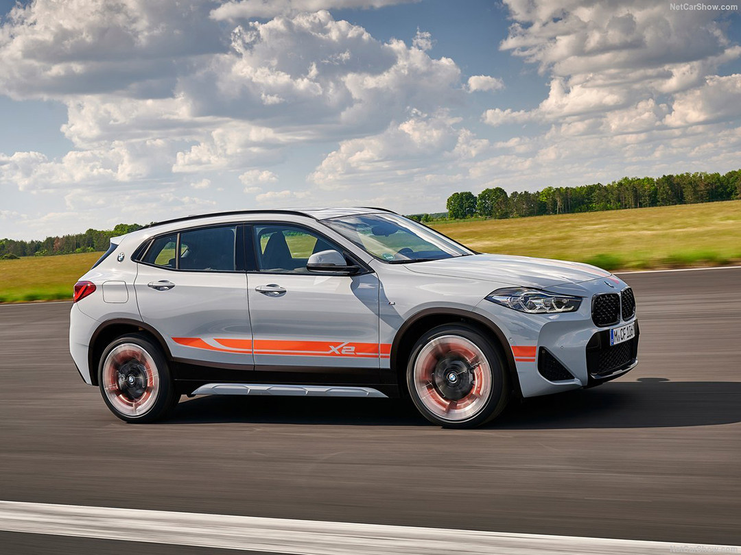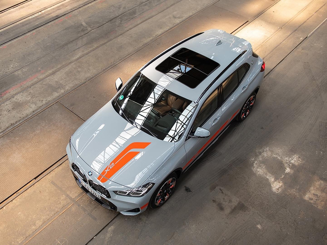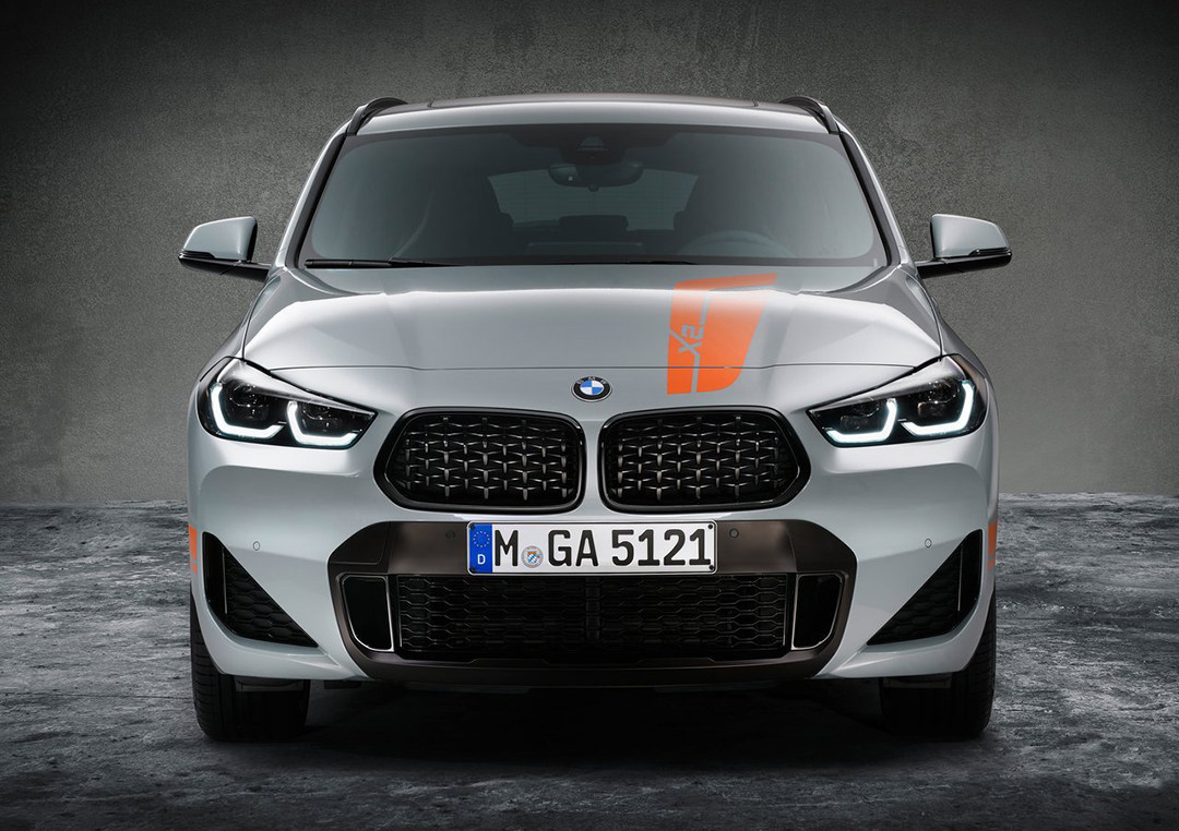 新款宝马X2 M Mesh Edition车型,最大的特色是突显运动化的特性,主要体现在两点:一是鲜艳夺目的橙色元素,在引擎盖、前杠、M空气动力学轮圈、车身侧裙上形成了视觉焦点,一秒就唤醒宝马关于赛车的基因;二是车身大量的熏黑设计,包括并不限于汽车进气格栅、窗框饰条、后视镜基座、行李架、后保险杠等位置,最大限度地给人以动感时尚的气息。