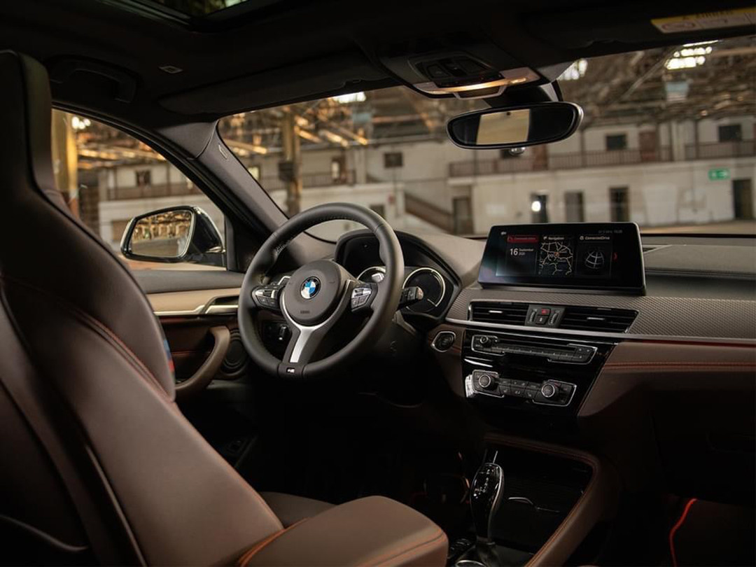 宝马X2M Mesh Edition与普通版X2在内饰上的区别更多在前者采用双色内饰和M运动桶椅的黑褐色Alcantara材质上。此外,橙色缝线也在座椅、中控台上大面积出现,与外观的橙色设计形成呼应。