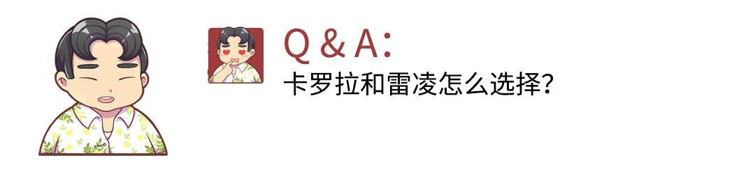 综合所述,是不是觉得雷凌性价更值得选择?不,我还没说完,卡罗拉比雷凌进入国内市场早10年,在市场的口碑、销量以及配套服务上,卡罗拉是比较有优势,同时知名度和保值率都更高一些,总的来说,追求性价比的就选择雷凌,注重保值及名气的就选择卡罗拉,无论怎么选择,都不差。