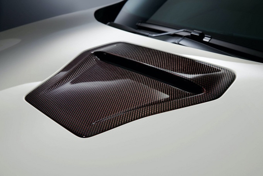 外观方面,引擎盖进气口和尾翼都可以选择由碳纤维和红色聚酯纤维编制而成的材质,此外进气格栅装饰、后视镜盖以及20寸锦标赛白漆合金锻造轮毂都可以选为红色涂装,整体视觉效果更具运动性。