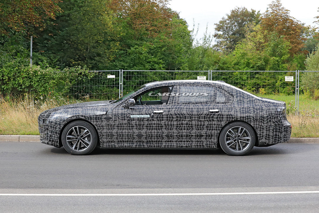 车身侧面,比较亮眼的就是侧裙蓝色的装饰条,以及造型科幻的轮毂,符合新能源车的一贯风格特色,结合之前曝光的谍照,尾灯的造型与前大灯相呼应,都是扁平的风格。内饰方面,虽没有曝光,但可以想象与7系布的局设计一致,在细节上,会新增一些蓝色饰条点缀,彰显新能车的身份。