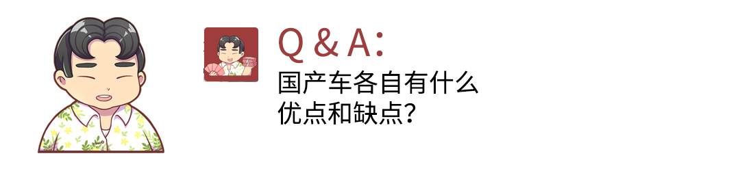 国产车的缺点:三大件稳定性不如合资车,发动机、变速箱以及底盘是汽车最为重要的核心,这方面的技术还有很大的成长空间,质量不稳定就会有连锁反应,导致品牌形象、品牌的溢价能力都不行,造成买国产车就会被人瞧不起的一种观念,这种观念是比较根深蒂固的,想要短时间突破是比较难的,一个好的品牌需要有自己的文化积淀,罗马也不是一天建成的,品牌形象也不是一天树立的,在这方面自主品牌还任重道远,革命尚未成功。
