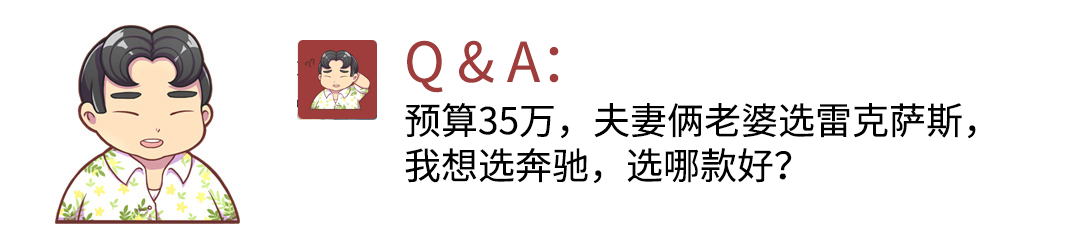 35万的预算,那就是雷克萨斯ES200和奔驰C260L之间的选择,奔驰在国内是一线豪华品牌,有着更高品牌调性和知名度,而雷克萨斯在国内算二线豪华品牌,低调优雅的代名词了。老婆喜欢雷克萨斯,追求的就是经济实用,是个贤惠顾家的好女人。