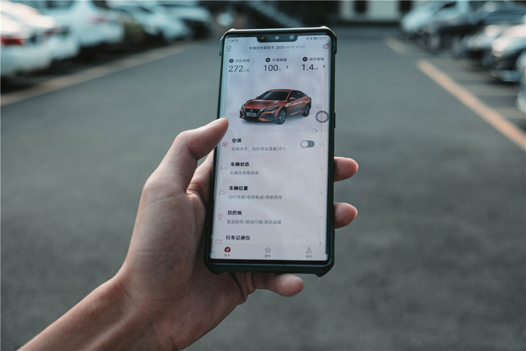 哪怕2021款轩逸犹如漆黑中的萤火虫那般耀眼,但要在车海茫茫的停车场将其寻觅却也是一项不小的工程,正当随行的小伙伴打算投身于寻找轩逸“大作战”之时,我说了一句“别慌”,旋即掏出了口袋中手机并打开里面的日产智联APP。