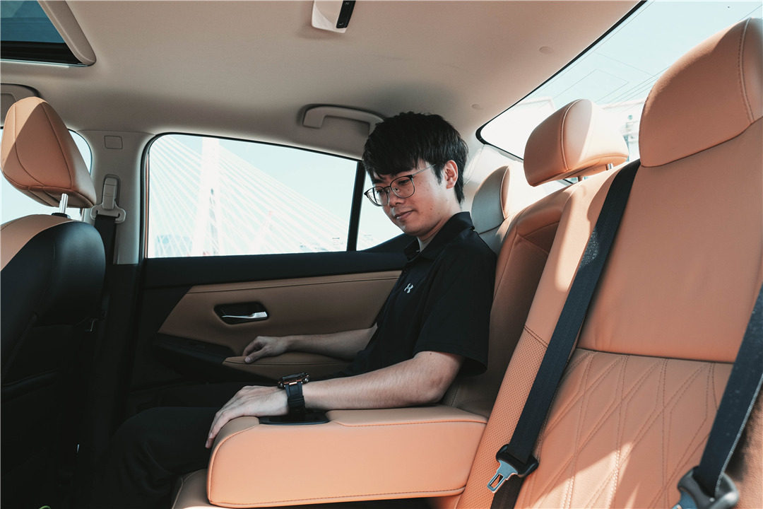此外,同级领先的2712mm超长轴距和主副驾间740mm超宽间距,将轩逸打造成一个全尺寸的智享空间,加上后排座椅错层式的设计风格,五人同时出行也完全不会感觉拥挤。尤为贴心的是,轩逸还配备了中央出风口和中间头枕,带给用户更宽适、舒心的乘车体验。