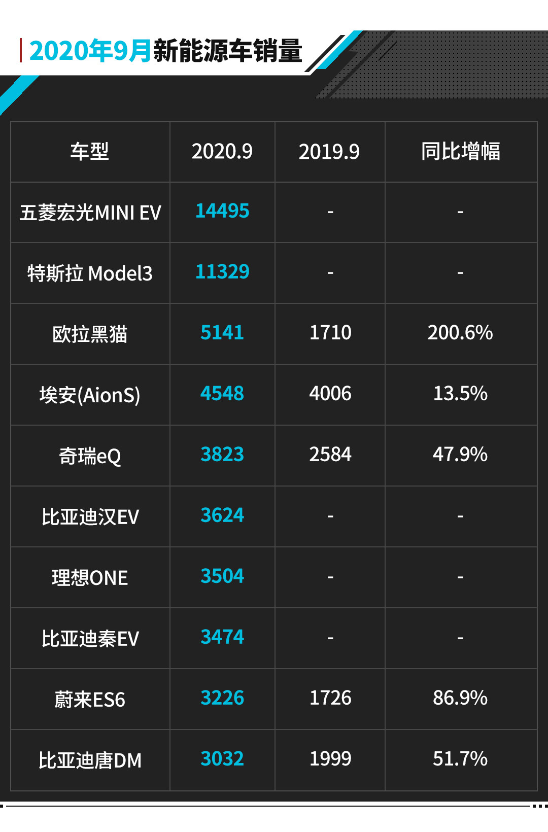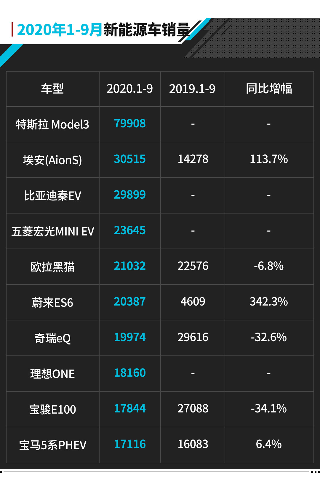 而在比亚迪汉上市后,比亚迪9月也卖出了19048辆,此外靠着Model3一举之力的特斯拉中国,9月卖出了11329辆,三家车企分列新能源三强。