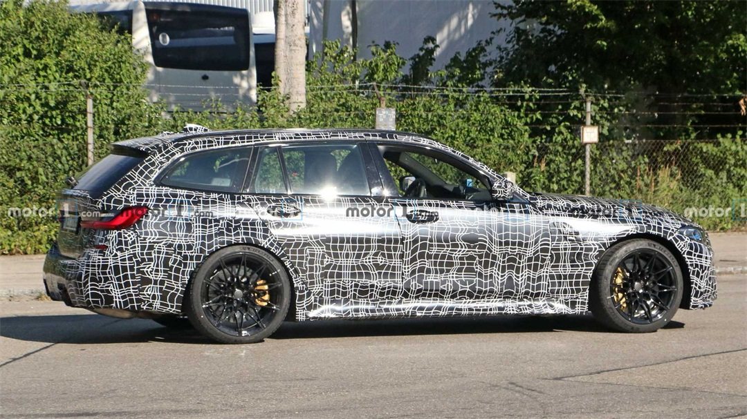近日,我们从海外媒体处获悉,全新宝马M3旅行版车型在纽博格林赛道进行测试。从图片中可以看到,新车在前脸部分的设计与全新M3保持了一致,硕大的中网依旧能在M3旅行版上看见,并且内部采用了较为粗壮的横向格栅造型,车侧能够很明显的看出其旅行车的身份,尽管如此,M3旅行版搭配了尺寸较大的轮圈,整体的视觉观感还是相当的低矮、动感。尾部尾灯的造型设计与M3几乎一致,“L型”的尾灯组立体感相当强,下方采用双边双出的排气布局,两侧排气之间的间隔较短,符合高性能车的调性。动力部分,M3旅行版预计会与M3相同,均搭载3.0T 6缸发动机,最大功率375kW,最大扭矩650N·m,0—96km/h的加速时间仅需3.8s。作为旅行版本,毫无疑问,相比于轿车版其最大的优势在于实用性上,超强的装载能力是M3旅行版所能给到你的,因此,他会不会是你性能、实用双兼顾的选择呢?(图源于motor1)