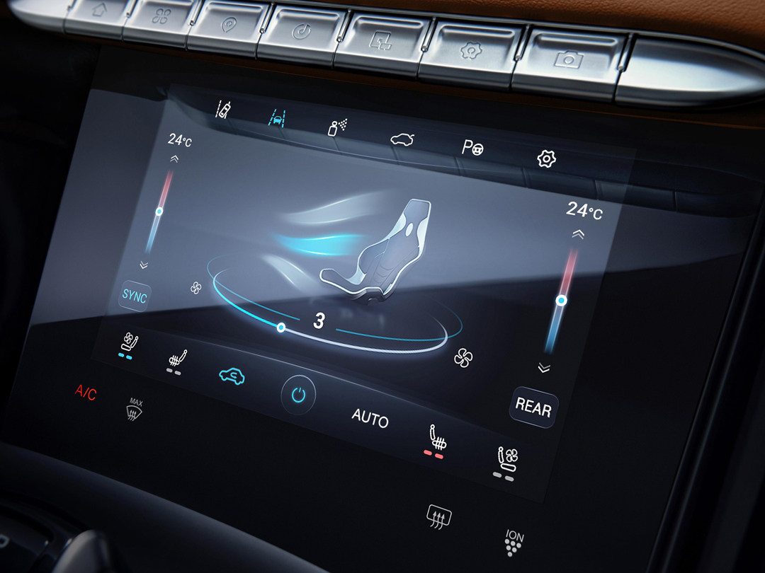 空调界面一目了然,显示直观,即便是第一次上手也能轻松找到各功能的位置,而温度、风量等高频率调节的功能配有物理按键,在视觉效果和实际使用效果上找到了不错的均衡。