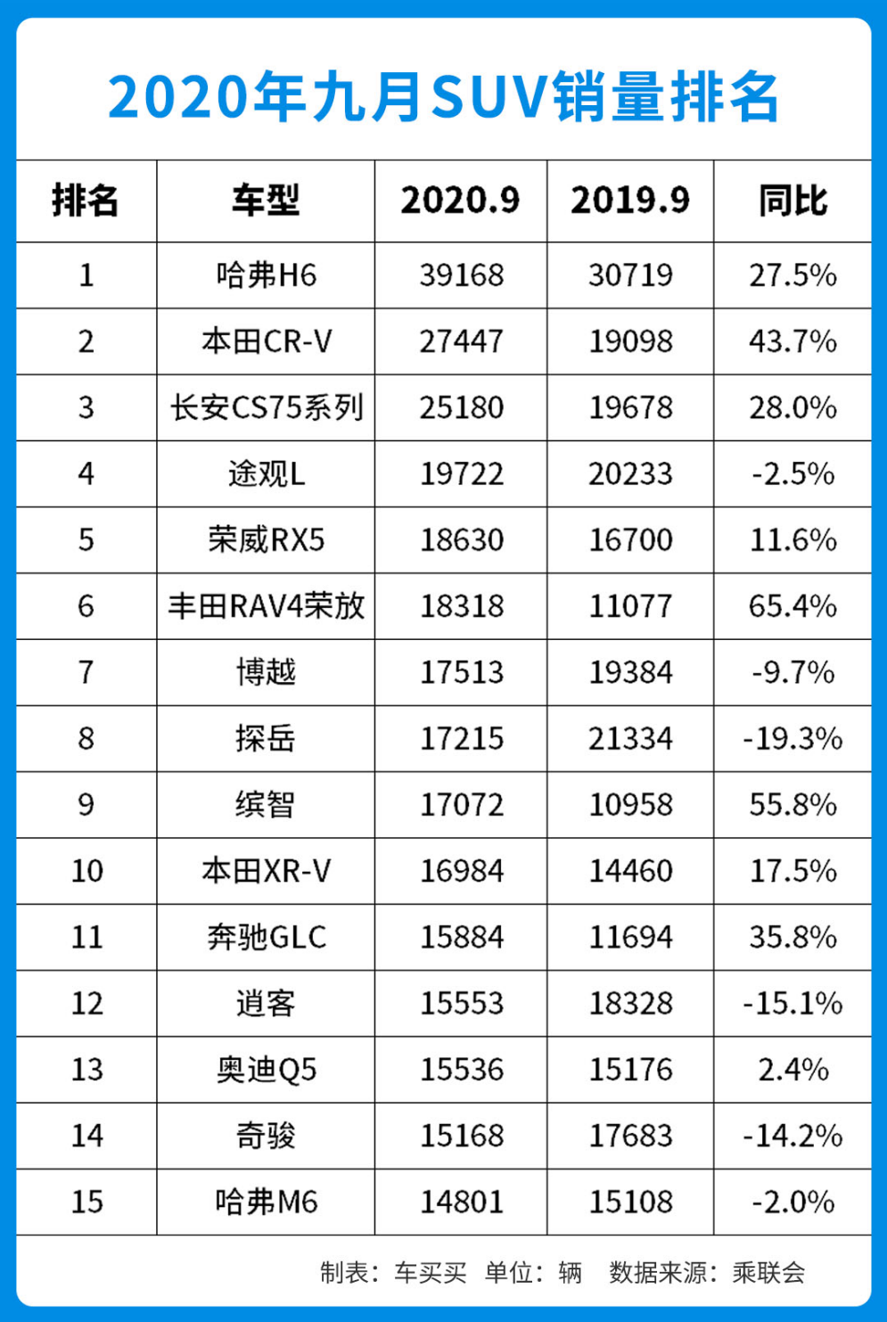 哈弗H6在9月卖了39168台,较去年同期增长27.5%,创下了今年以来最好成绩。