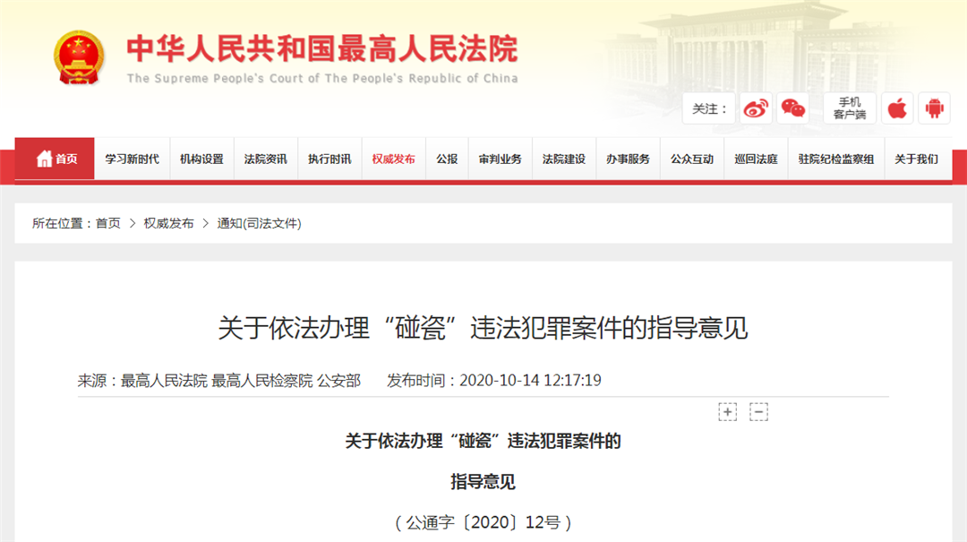 因此针对“碰瓷”现象,近日最高人民法院、最高人民检察院、公安部联合印发《关于依法办理“碰瓷”违法犯罪案件的指导意见》(下文简称指导意见),全面加强对此类违法犯罪行为的打击力度。 《指导意见》首次明确界定“碰瓷”的定义,以及“碰瓷”的法律适用及定罪量刑。