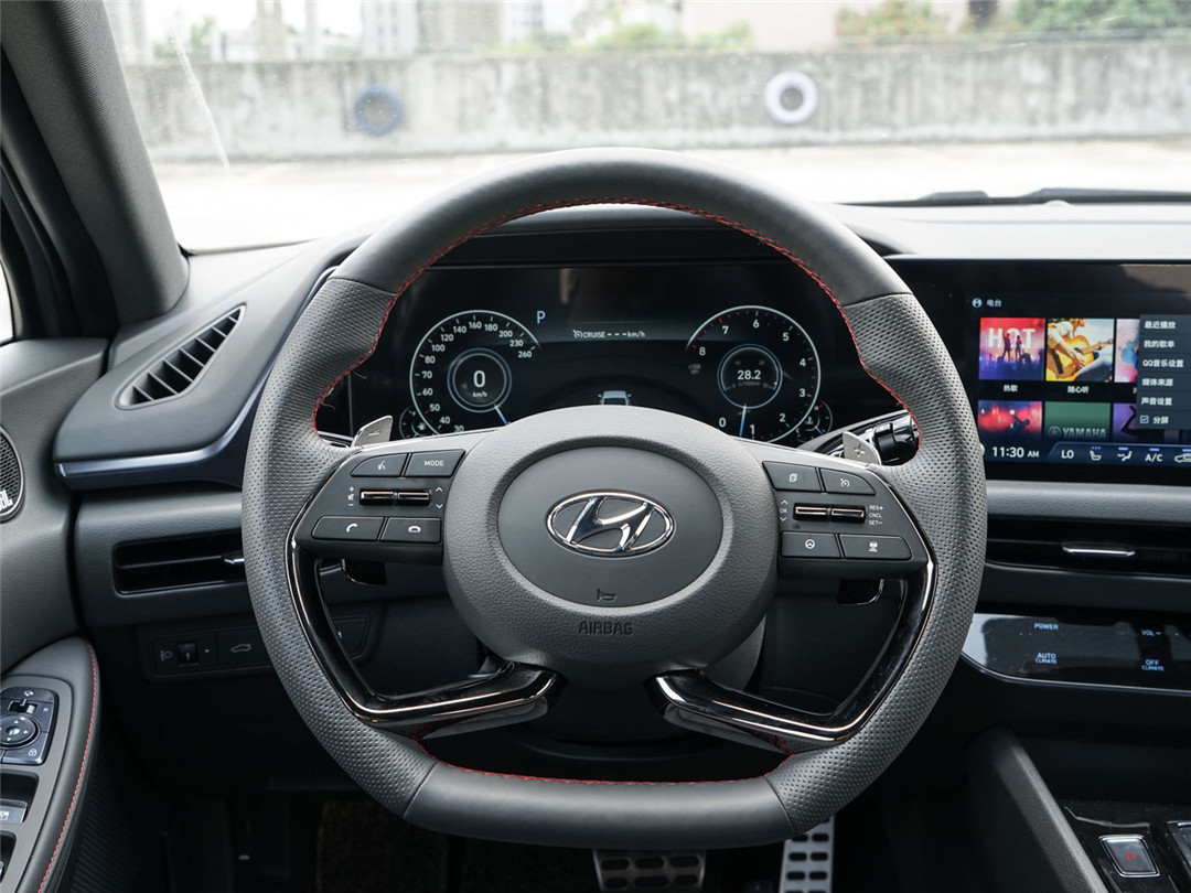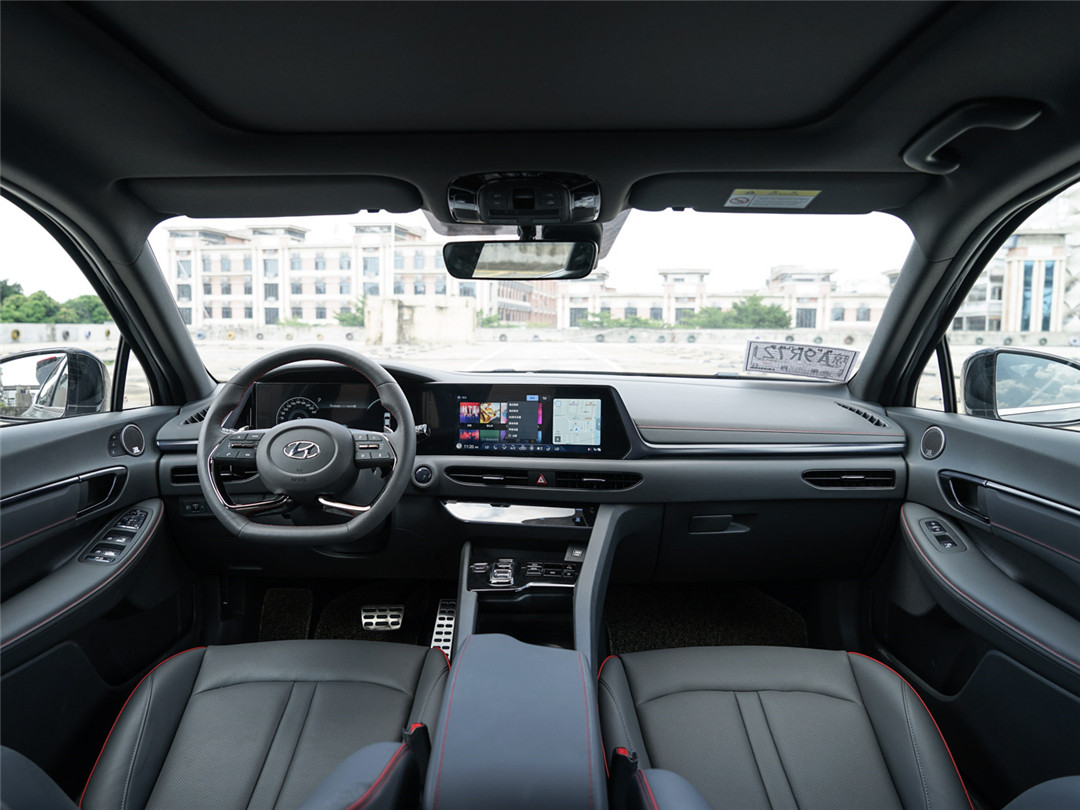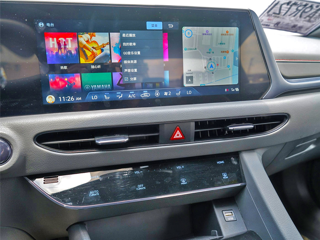 液晶仪表盘和液晶中控屏的搭配,在2020年看来并不出奇,不过在第十代索纳塔上,还是通过一定的细节展现出了自己不同的设计语言。其中大尺寸的中控液晶屏的角度是向驾驶员侧倾斜的,这一设计不仅打破了常规车型上平直的呆板设计,还大大减少了中控液晶屏常有的反光问题。
