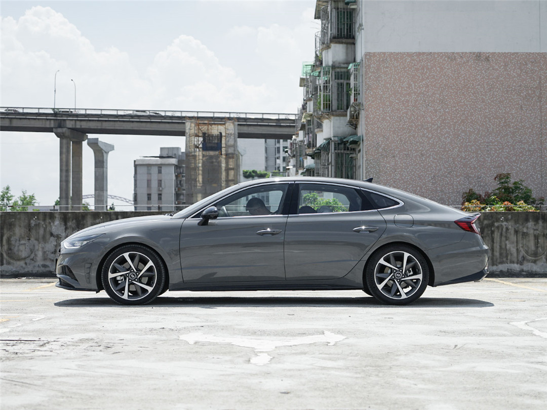 而车侧的设计风格变化也很大,第十代索纳塔的车身尺寸为4955/1860/1445mm,比上一代长了100mm,宽了25mm,却是低了40mm,整体视觉感变得更加运动;而由于车身加长而加长的轴距现在也达到了2890mm,侧面营造出了修长的轿跑风格,腰线等细节设计又加强了运动性。