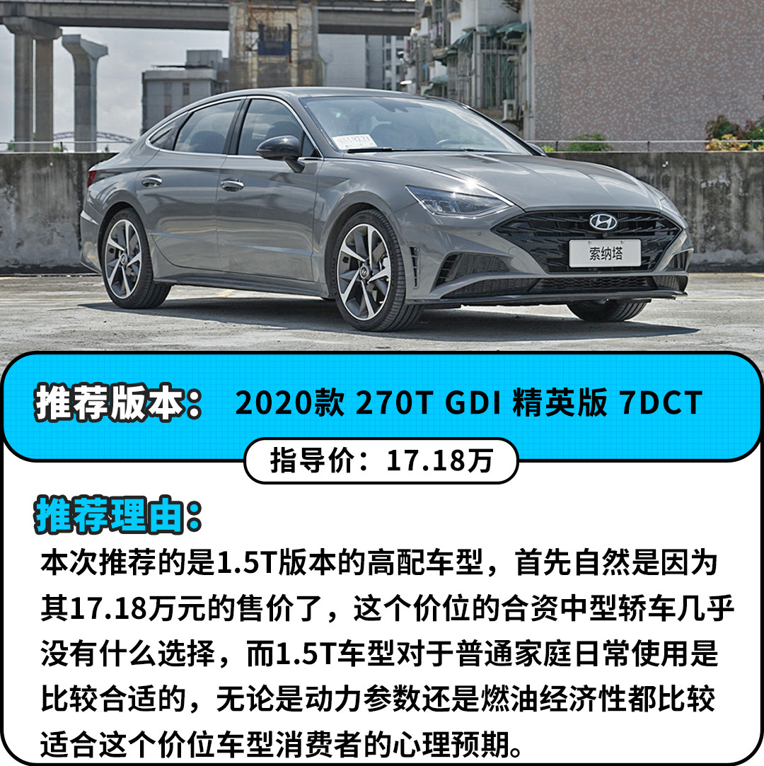 此外在其他配置上,索纳塔也有着自己的特色:第十代索纳塔共有6种车颜色供选择,除了烈焰红外,其余都是偏冷或中性的颜色,这也能看出它的年轻运动定位。轮圈则是3种尺寸3种样式,而它们的结构都比较复杂,富有运动气息。那么在这么多种选择中,哪款车型又是最值得购买的呢?