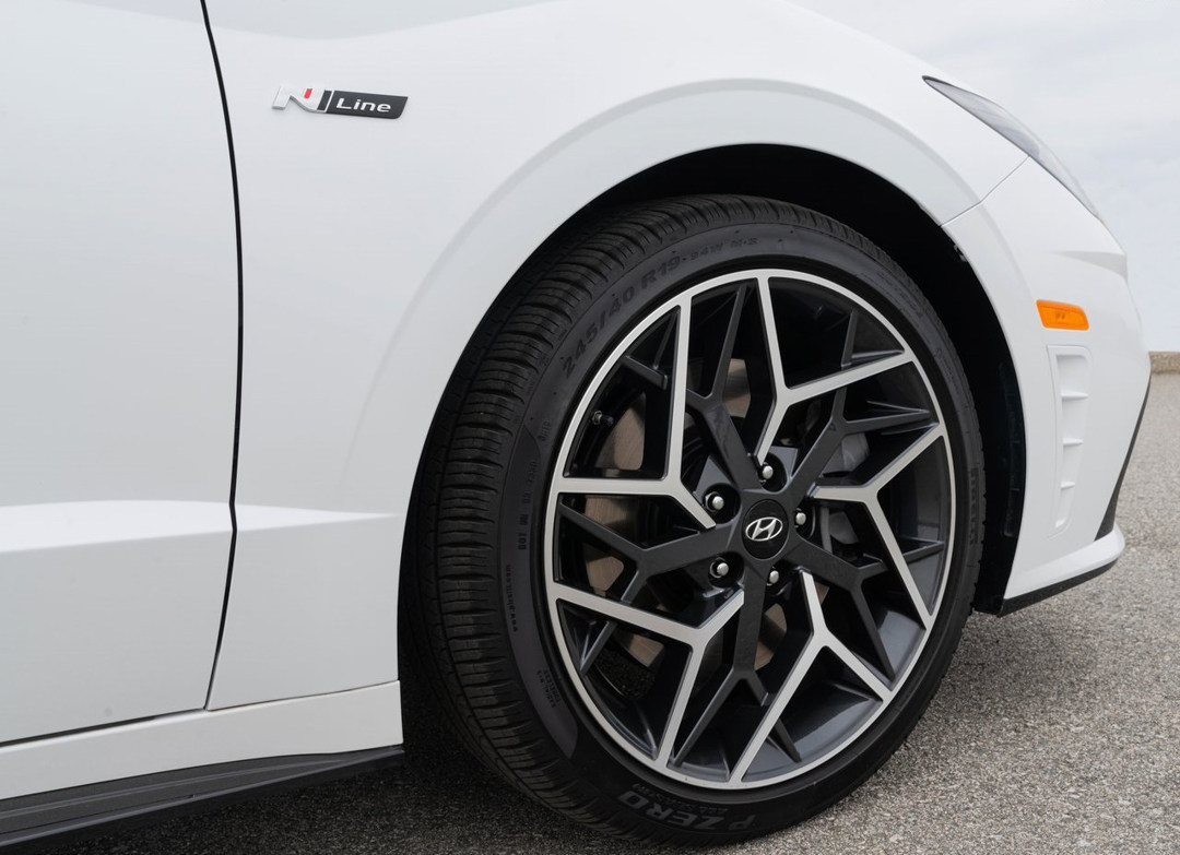 侧面最大的变化就是换装了19英寸的双色多幅运动轮毂,样式与i20N十分接近。轮胎的尺寸也升级到了245/40/R19,更低的扁平比可以减少高速过弯时因为胎壁过大而发生的形变,从而提高操控性。