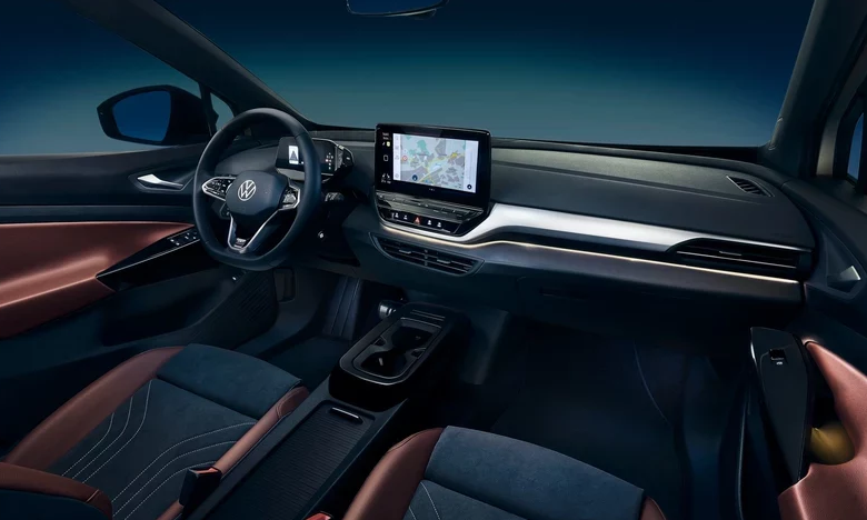 内饰方面,从海外来看,ID.4沿用了ID.3的布局,走的是简约风格,换挡拨杆同ID.3一样位于仪表盘右侧,并且搭载了悬浮式中控屏,整体的科技感营造不错。