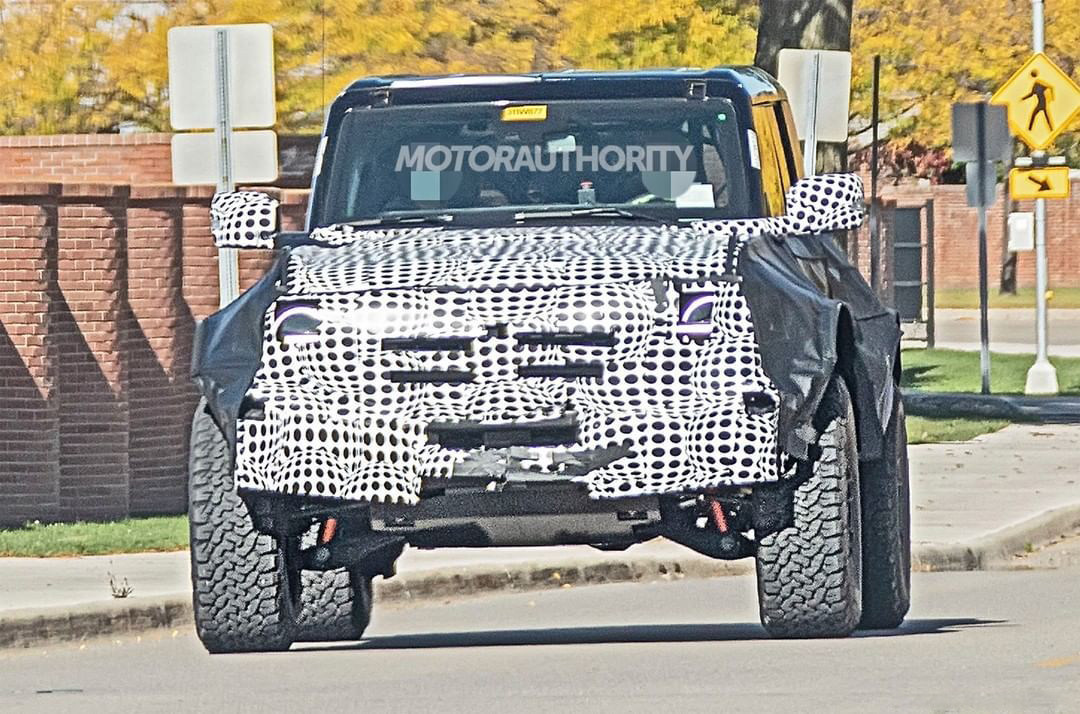 虽然推出的时间并不长,但Bronco迅速成为4X4民用SUV市场的为数不多可以同时满足个性、情怀和性能的一款产品。Bronco Warthog正是福特Bronco的高性能版本,从此次泄露出的谍照来看,Bronco Warthog被包裹得很严实,前脸采用黑白迷彩图案伪装,车身则覆盖黑色物遮挡,目前车身的信息不多,但可以确定的是全尺寸的全地形轮胎。