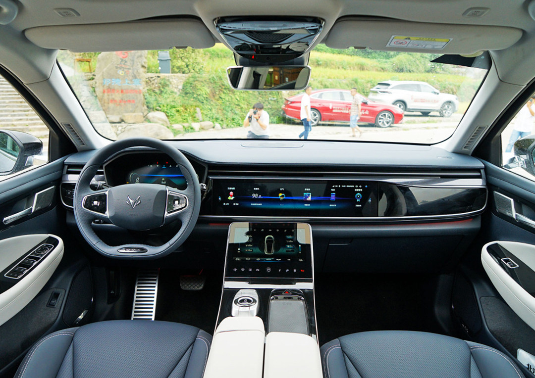 车内部分,ARCFOX αT有着新能源的极简设计理念以及超级夸张的屏幕尺寸和数量,据悉车内有4块智能交互大屏,而中控屏宽度达到935mm的20.3英寸定制大屏,也是全球首创,而车机系统也支持面向未来的5G技术、人脸识别、手势甚至声纹等黑科技。值得关注的是,新车配备α-Pilot驾驶辅助系统,一共装载23个高精密度传感器,足以实现自动跟车、车道保持、换道避险、自主避障防撞、交通标志识别以及车辆泊车辅助等功能。