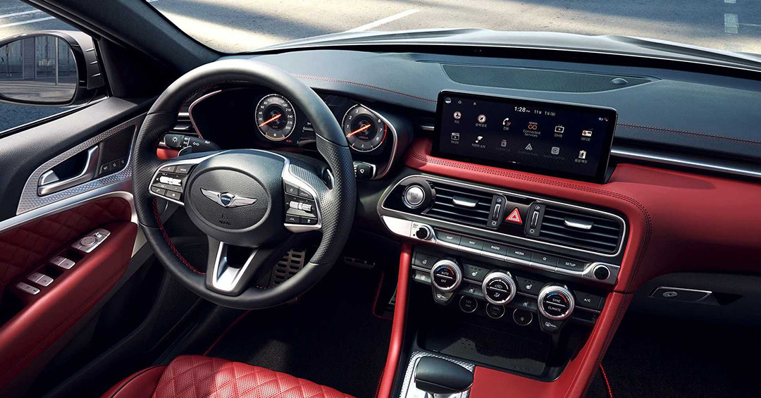 内饰方面,全新捷尼赛思G70的内饰采用了全新的设计,配备了全液晶仪表盘与10.25英寸的悬浮式中控多媒体显示屏,让车内的豪华感倍增;而带换挡拨片的三辐式多功能方向盘,以及最新的OTA无线更新系统,则是将车内的科技感体现出来。