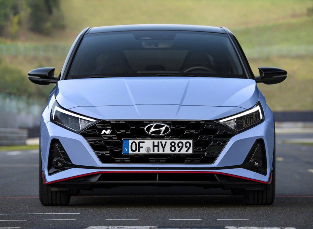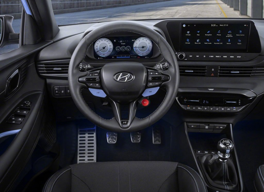 从外观来看,新车整体上延续全新i20的设计,只是在细节进行性能车的打造,而发布的官图正是采用N系列所独有的性能蓝配色,此外尺寸夸张的前唇、进气口、N系列徽标以及红色点缀的侧裙等,都展示着这台小车的运动感。内饰相对比较精致,全液晶仪表盘和中控屏尺寸皆为10.25英寸,下方的空调调节则采用按键式设计,非常讲究;而在另外一方面,这毕竟是一台性能车,所以运动型方向盘以及运动座椅自然是不会缺席。