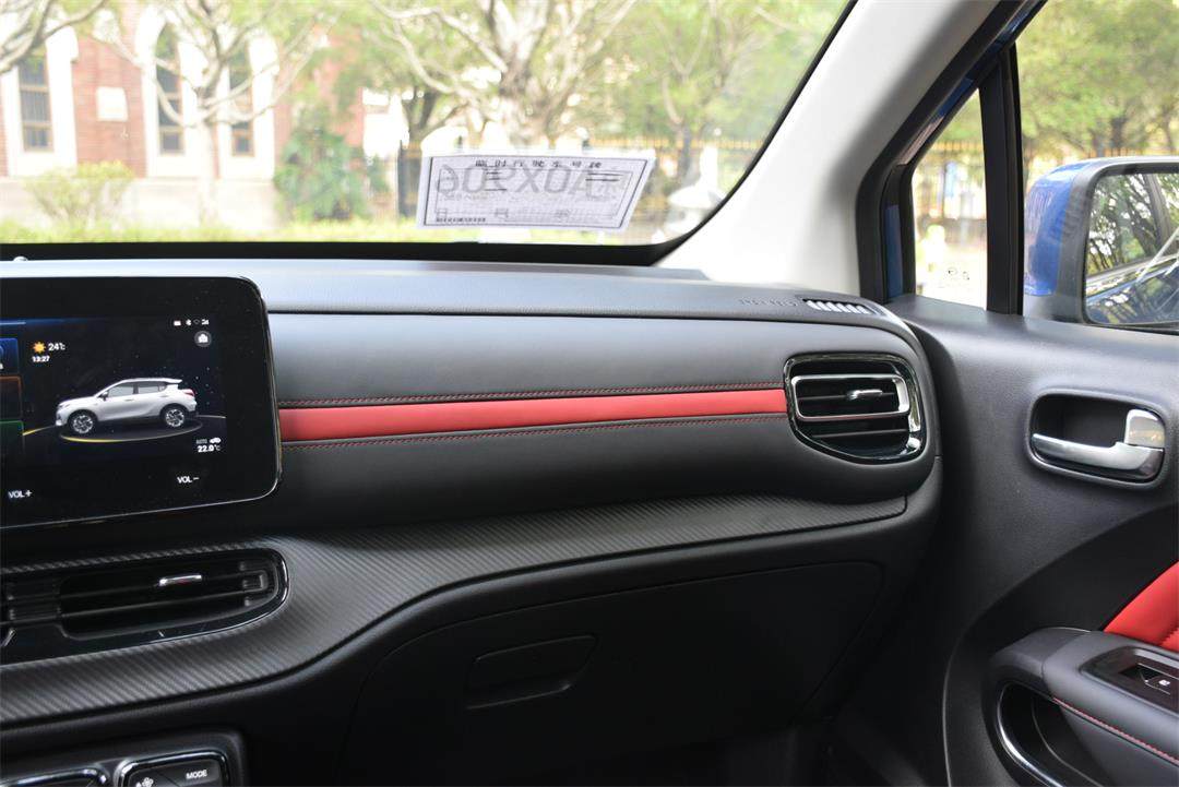 而为了呼应产品年轻化的定位,在中控台和车门的的软质材料包裹上也采用了一定的点缀设计。