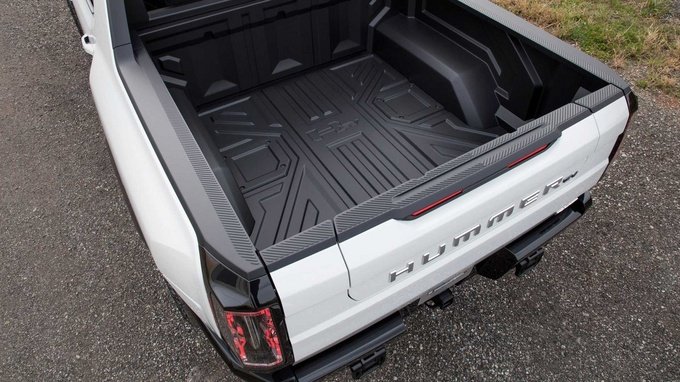对于这么一个大块头的皮卡来说,悍马EV的货斗容积并不算大,但电动尾门在开启时会向下打开一个梯级,方便上下货斗。