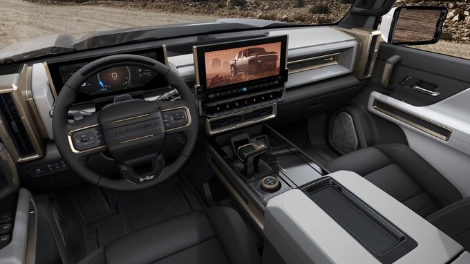 来到车内,最吸引人眼球的莫过于12.3英寸液晶仪表盘和13.4英寸的中控屏了,如果不看方向盘上的LOGO,你绝不会想到这是一辆悍马的内饰。