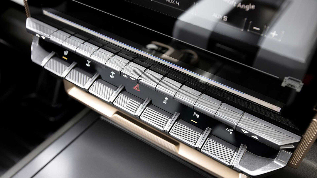 虽然HUMMER拥有一块尺寸达13.4英寸的触控大屏,但也在中控台上保留了一排琴键式物理按钮,负责控制空调、泊车辅助、驱动模式等功能。